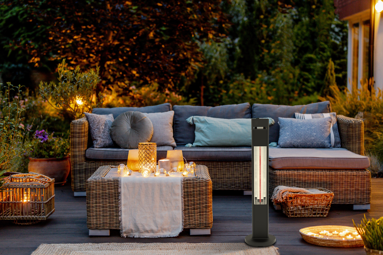 Aby taras był przytulny i ciepły nawet w chłodne wieczory, warto zainwestować w ogrzewanie. Komfort termiczny zapewnią nam ogrzewacze tarasowe. Do wyboru mamy parę modeli, w sklepach Leroy Merlin znajdziemy: ogrzewacz tarasowy kolumnowy, ogrzewacz tarasowy elektryczny oraz zawieszany ogrzewacz tarasowy ścienny. Dwa pierwsze urządzenia są mobilne – możemy je przestawiać w dowolne miejsce na tarasie.