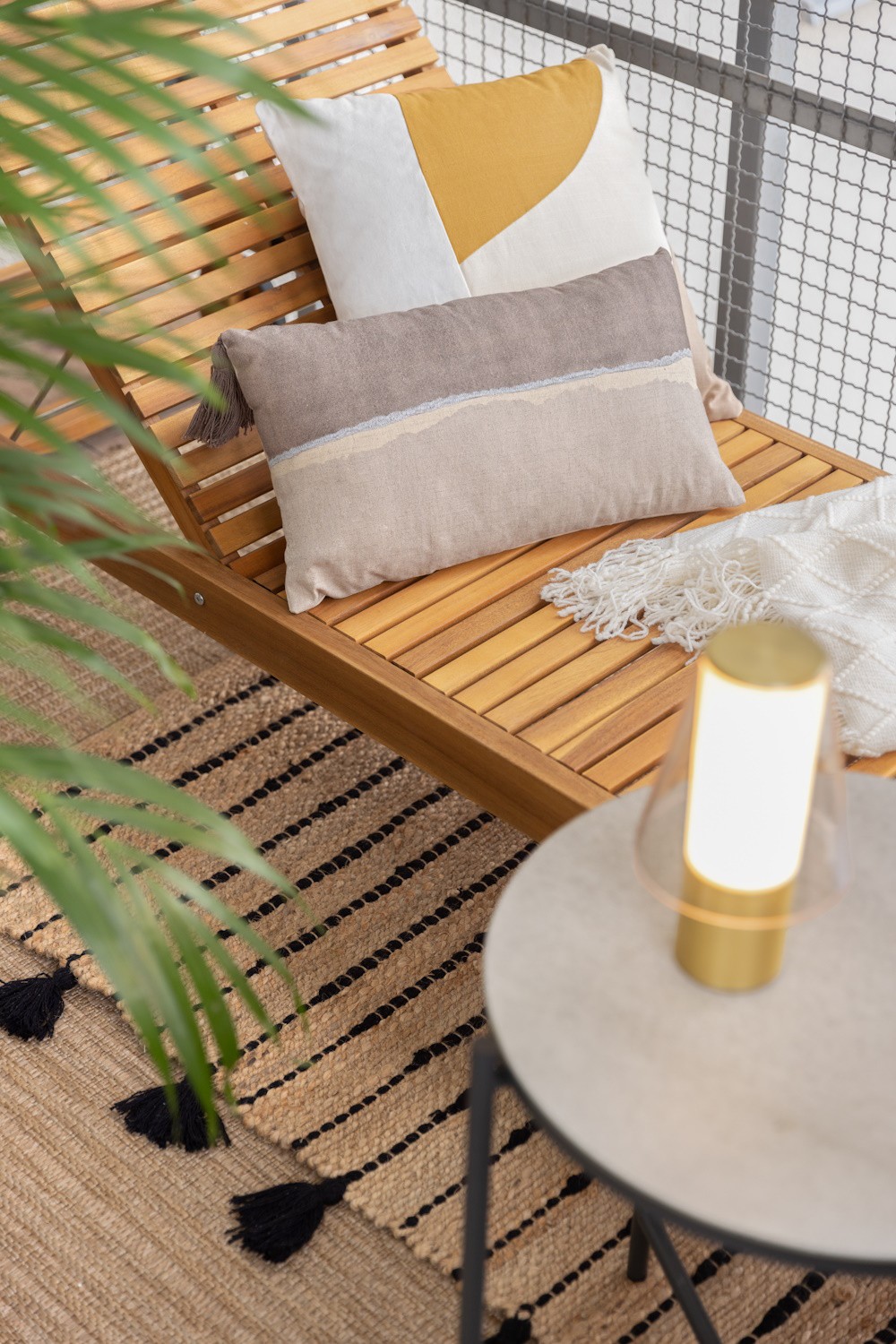 Chcemy zamienić balkon w strefę chilloutu? Nie może zabraknąć oczywiście miejsc do wylegiwania się w ciepłe dni. Świetnie sprawdzą się duże poduchy do siedzenia, w naturalnych kolorach, a obok nich niska, drewniana ława przypominająca tradycyjny stół z północnej Tajlandii. Jeśli możemy sobie pozwolić na większy wydatek, wstawmy leżak ogrodowy, a do tego krzesełka i stolik, przy którym wypijemy kawę. A może nawet komplet wypoczynkowy z wygodnymi poduchami? Świetnie! To będzie nasz kącik do herbaty, medytacji i wieczornego przesiadywania przy lampionach.