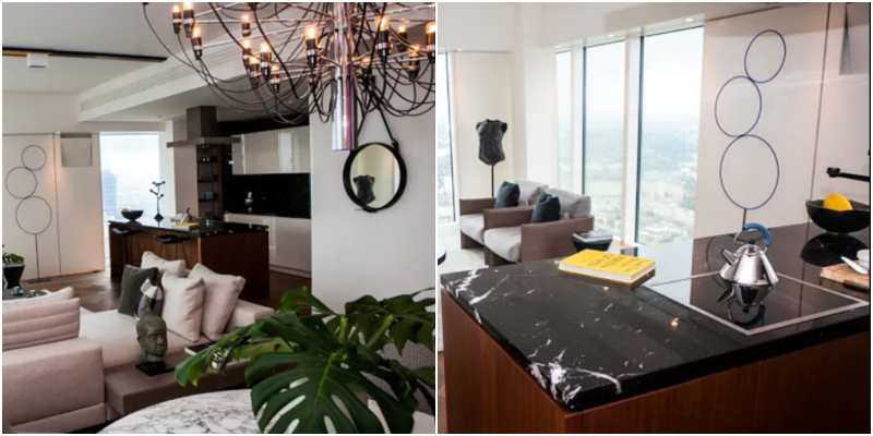 Mieszkanie "w chmurach" ma 195 m², niestety nie wiadomo, na którym jest dokładnie piętrze. Wnętrza zaprojektowała londyńska pracownia Woods Bagot.
