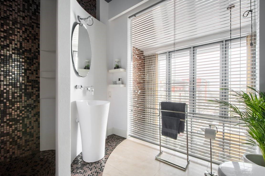 Lokum znajduje się na strzeżonym, mokotowskim osiedlu Biały Kamień. Mieszkanie ma 140 metrów kwadratowych, jest dwupoziomowe i przestronne.