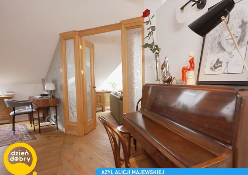 Alicja Majewska w domu dzieli przestrzeń na poddasze, które służy jako twórcza pracownia, i piętro mieszkalne, gdzie odpoczywa i nabiera sił po koncertach. Artystka w wywiadzie dla programu śnadaniowego "Dzień dobry TVN" przyznała, że pokój, w którym stoi pianino, główwne miejsce jej pracy, nie był przytulny. Dominowała biel i surowość. I choć artystka lubi ten kolor, często na występach możemy ją podziwiać w białych kostiumach - w domu zaczął być męczący.