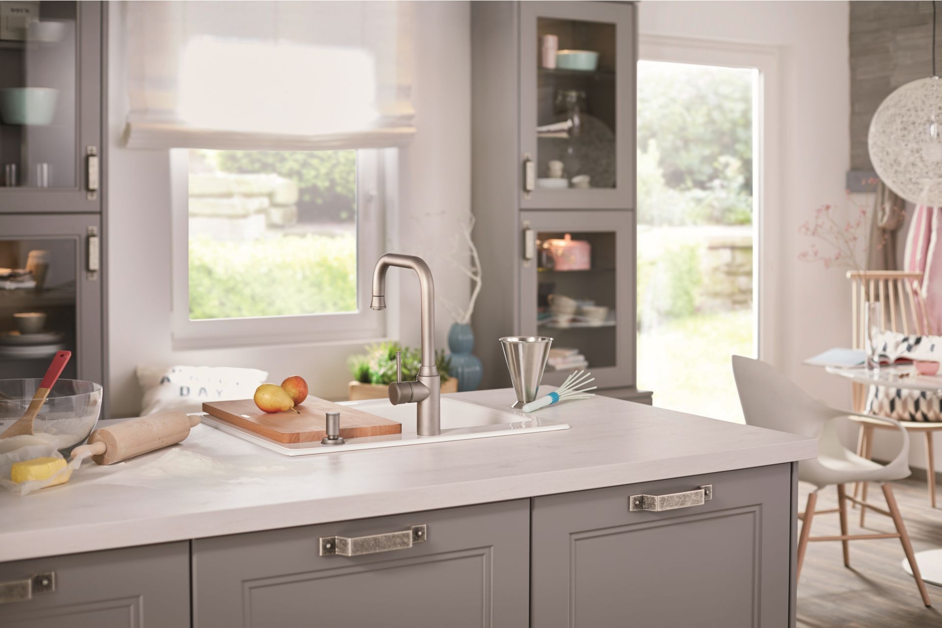 Oprócz ilości komór, zwróćmy uwagę na sposób montażu. Zlewy wpuszczane w blat montuje się od dołu szafki, jest to rozwiązanie bardzo praktyczne i higieniczne, sprzyja utrzymaniu czystości oraz eliminuje powstawanie bakterii i brudu. Drugi typ montażu to zlewy podwieszane. Trzeci, coraz częściej wybierany montaż na równi z blatem, tworzy w przestrzeni kuchennej jedną, funkcjonalnie i wizualnie perfekcyjną całość. Umożliwia łatwe czyszczenie blatu i doskonale prezentuje się w nowoczesnej, przestronnej strefie kuchennej.