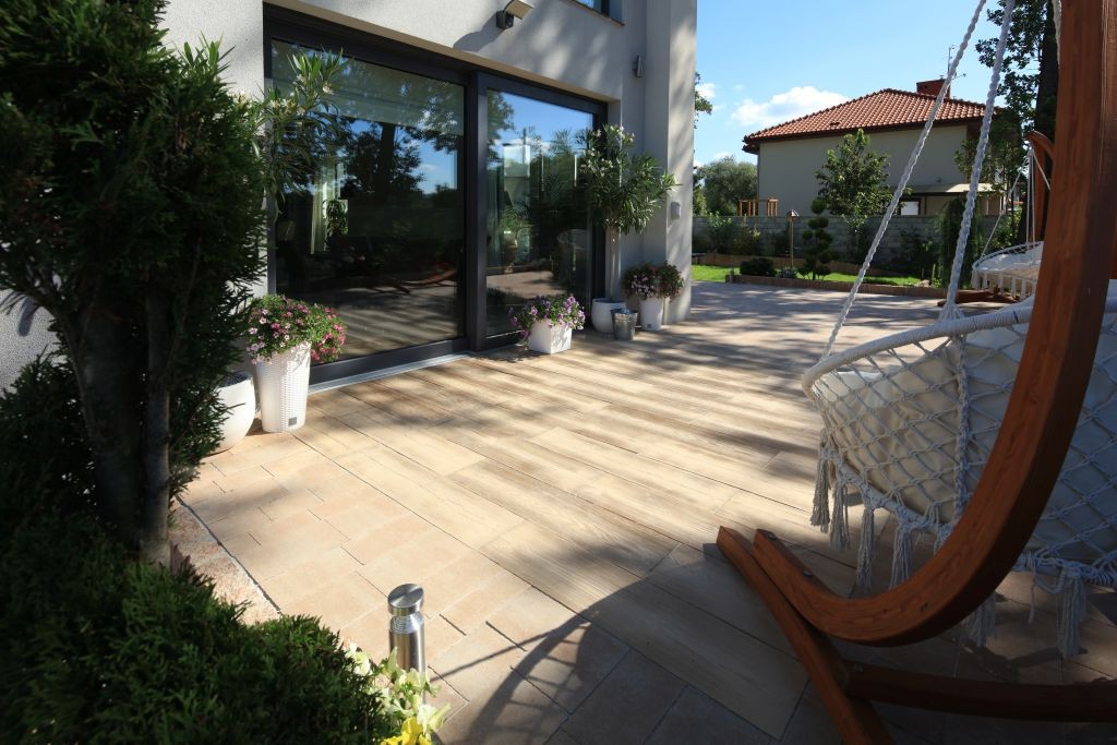 Tarasy to zwykle dość duże powierzchnie, dlatego najczęściej używanymi i najmodniejszymi płytami są te o dużych wymiarach. Ciekawym rozwiązaniem dedykowanym tarasom jest płyta Polbruk Lira, która swoją fakturą i kolorem doskonale imituje naturalne drewno. Jest ona polecana do aranżacji w stylu modernistycznym, skandynawskim lub śródziemnomorskim. Posiada wymiary 25x50, 25x75 i 25x100 cm oraz grubość 4 cm. Występuje w dwóch kolorach – beżowym i brązowym. Ciekawą alternatywą, którą można wykorzystać w nowoczesnych aranżacjach jest utrzymana w odcieniach melanżowej szarości płyta Polbruk Lamell. Występuje ona w trzech kolorach – stalowym, nerino, fokstrot o fakturze gładkiej oraz ritmo_d o fakturze płukanej. Posiada wymiar 60x40 cm oraz grubość 4,5 cm, co sprawia, że świetnie nadaje się do zastosowania jako płyta tarasowa. Oczywiście nie są to jedyne rozwiązania. Możliwości jest naprawdę wiele i tylko od naszej kreatywności i gustu zależy, jaki wariant zastosujemy w wymarzonej aranżacji.