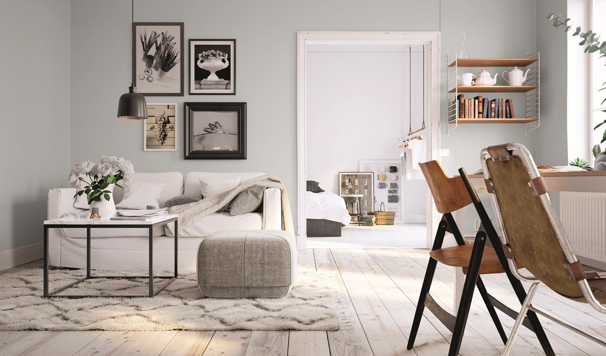 Jeśli chcemy uzyskać nowoczesny charakter wnętrza w jasnej tonacji, trafionym rozwiązaniem będzie zastosowanie na ścianach delikatnej, a przy tym niezwykle szykownej szarości 1959 z palety Tikkurila Deco Grey. Odcień ten zagra perfekcyjnie z bielą sypialni, która zadziała rozświetlająco niczym kolejne okno. Oprócz kolorystyki mających funkcjonować w dekoracyjnej symbiozie wnętrz, warto przemyśleć także, co będzie widoczne w tle i do obu pomieszczeń wprowadzić spójne elementy ozdobne - mogą to być np. obrazy czy grafiki w ciekawych ramach.
