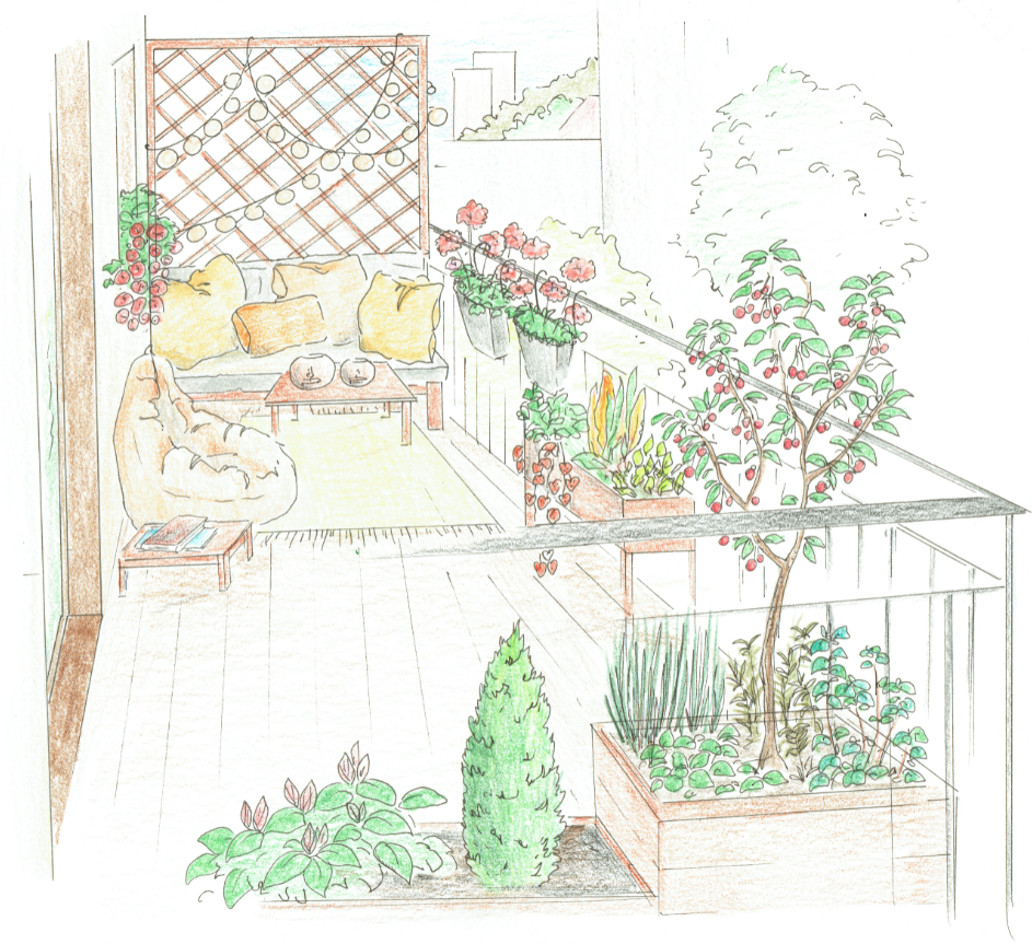 Piękny balkon to ciekawy i zaskakujący balkon! Wybierz surfinie, które zasadzisz w donicach na oknie i pelargonie – one znajdą miejsce na wewnętrznej części balustrady. Podniesiona grządka będzie idealna na warzywa balkonowe, takie jak truskawki wiszące, sałaty czy buraki liściowe.
