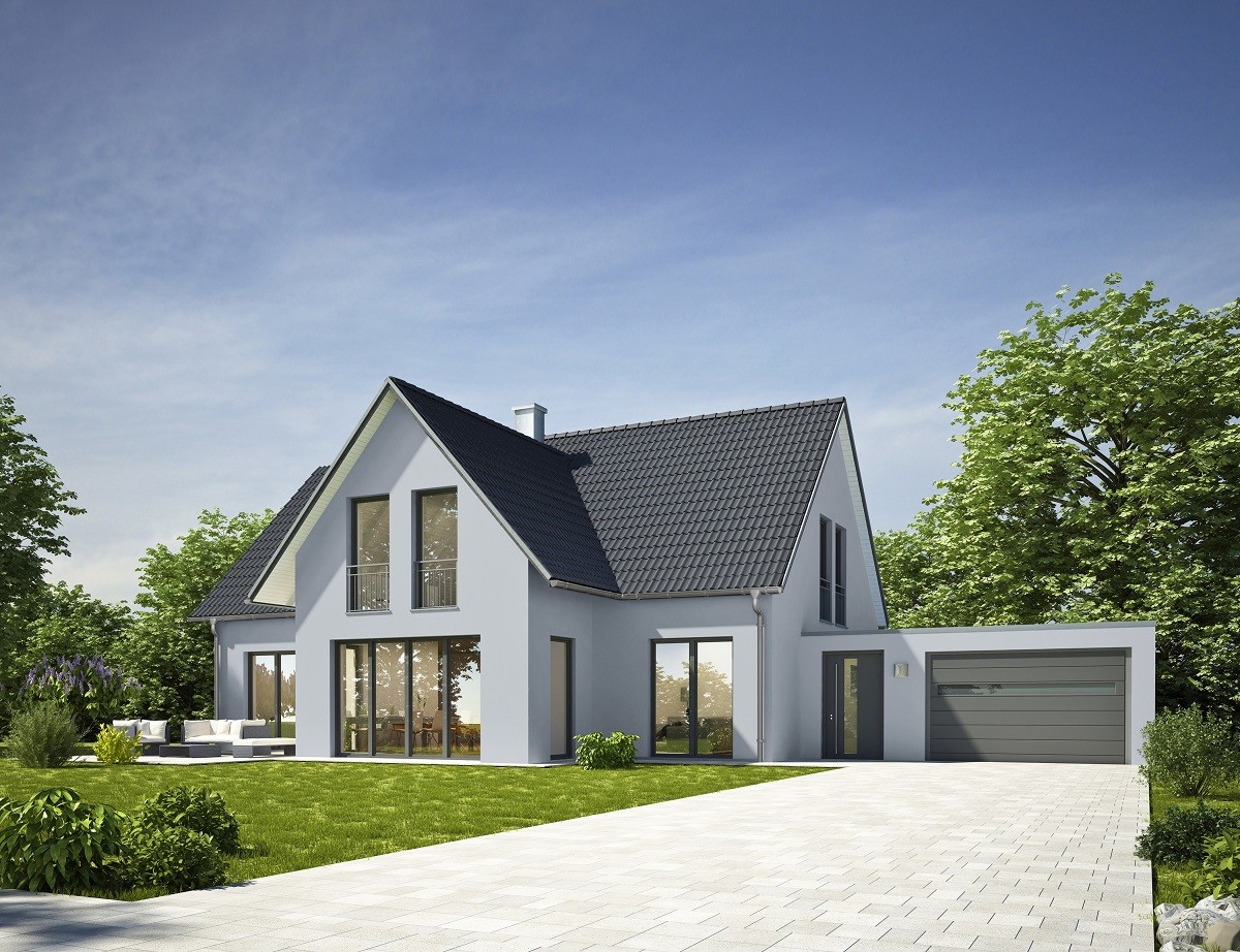 Szarości ze względu na swój ponadczasowy charakter są kolorem, po który wiele osób sięga chętnie nie tylko we wnętrzach, ale także na zewnątrz domu. Kolorystyczna nowość - Elegancki Grafitowy – szczególnie sprawdzi się na elewacjach budynków o nowoczesnej bryle. Zastosowany na fragmentach fasady stworzy ciekawy kontrast z bielą i doda całości oryginalnego wyrazu. Efektownie zaprezentuje się też elewacja pomalowana farbą w odcieniu Delikatny Szary w zestawieniu z ciemnymi elementami, np. grafitowym dachem.