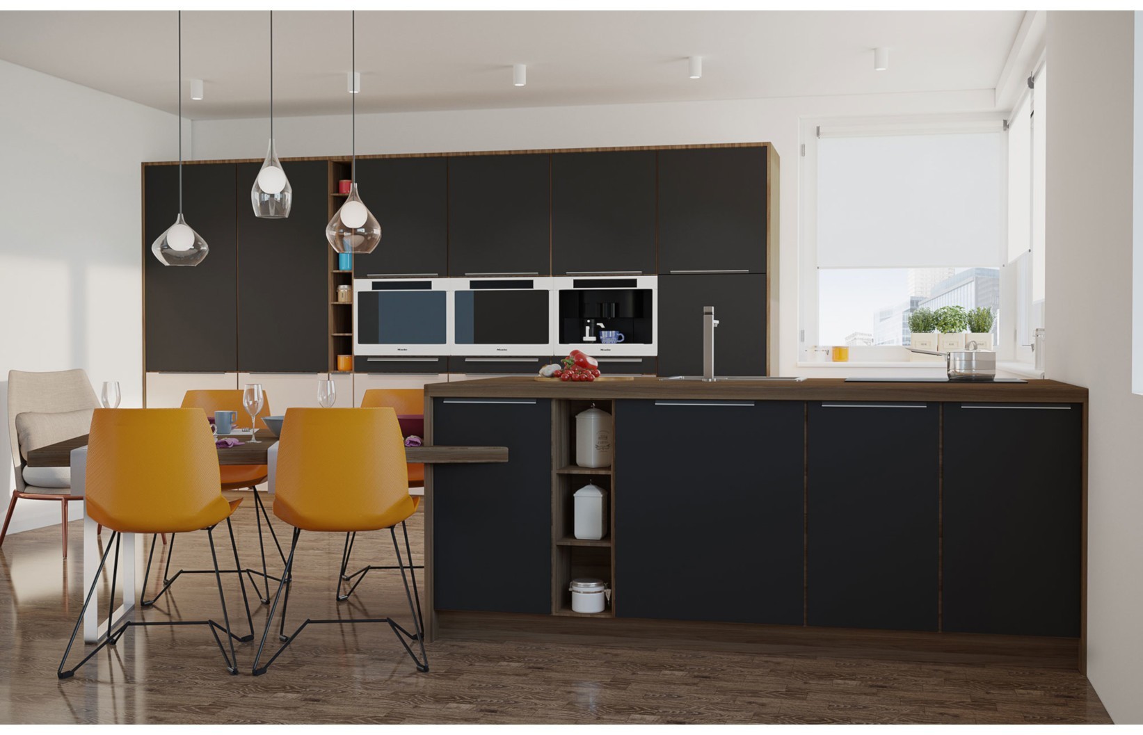 Fronty mebli kuchennych zazwyczaj utrzymane są w jednolitej kolorystce. Dominuje biel, czerń, odcienie drewna i szarości. Aby przełamać klasyczne aranżacje, warto wykorzystać również bardziej wyraziste i odważne barwy, które wniosą trochę radości do przestrzeni. W nowoczesnych aranżacjach kolor zazwyczaj występuje na jednym poziomie mebli, np. w przypadku górnych szafek – druga część to często kontrastowe odcienie bieli lub czerni. Bez względu na to, jakiej wielkości jest Twoja kuchnia, kolor na frontach nie powinien zdominować całej aranżacji – ma być jej subtelnym dopełnieniem. Oprócz stylistyki zwróć uwagę na praktyczny wymiar kuchni. Określ swoje potrzeby, przemyśl liczbę akcesoriów, które są Ci niezbędne i wymagają właściwego przechowywania w kuchennych szafkach. Następny krok to wybór korpusów mebli i odpowiedniego ich układu w pomieszczeniu.