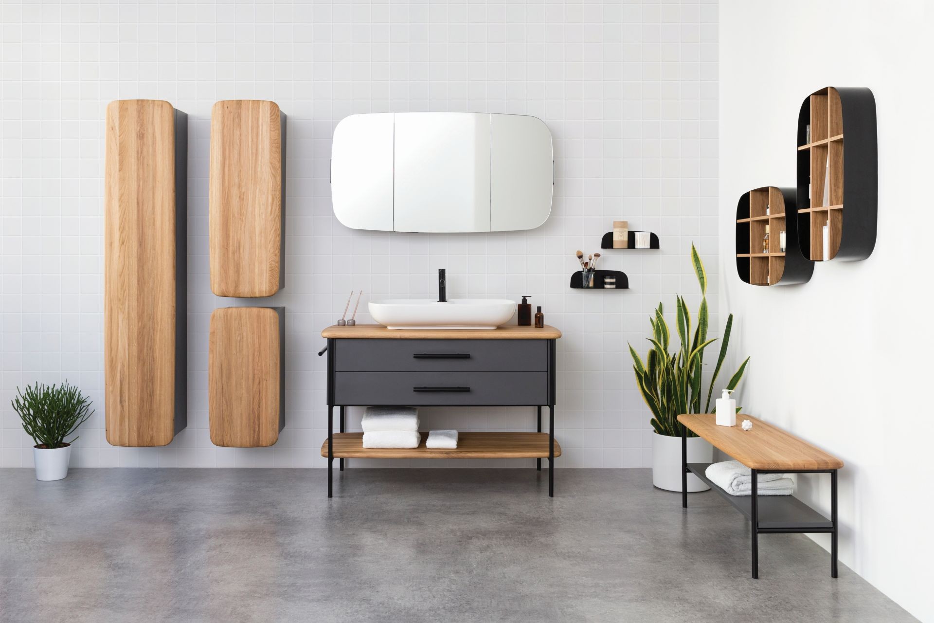 Meble łazienkowe OVAL wyróżnia charakterystyczna dla projektantów, minimalistyczna forma. To dobrze wyważona mieszanka stylu skandynawskiego i loftowego, przykuwająca uwagę subtelnymi opływowymi kształtami. Zastosowano tu naturalne materiały: olejowane drewno oraz malowaną proszkowo stal, dzięki czemu rodzina mebli zyskała ponadczasowy charakter. To propozycja dla ceniących jakość wykonania i niebanalne połączenia.