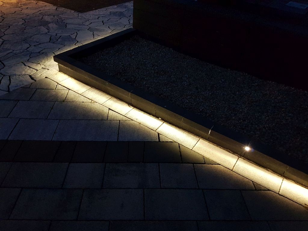 Niektóre elementy „małej architektury” ogrodowej mogą być również wykorzystane jako swego rodzaju oświetlenie. Dobrym przykładem jest obrzeże Polbruk Flesz. Posiada ono kształt odwróconej litery „L”. Pod jej daszkiem można ukryć taśmę LED, która rozświetli ścieżki w ogrodzie nocą. Rozwiązanie to gwarantuje nie tylko wspaniały efekt, ale również poprawę bezpieczeństwa poruszania się po ogrodzie.