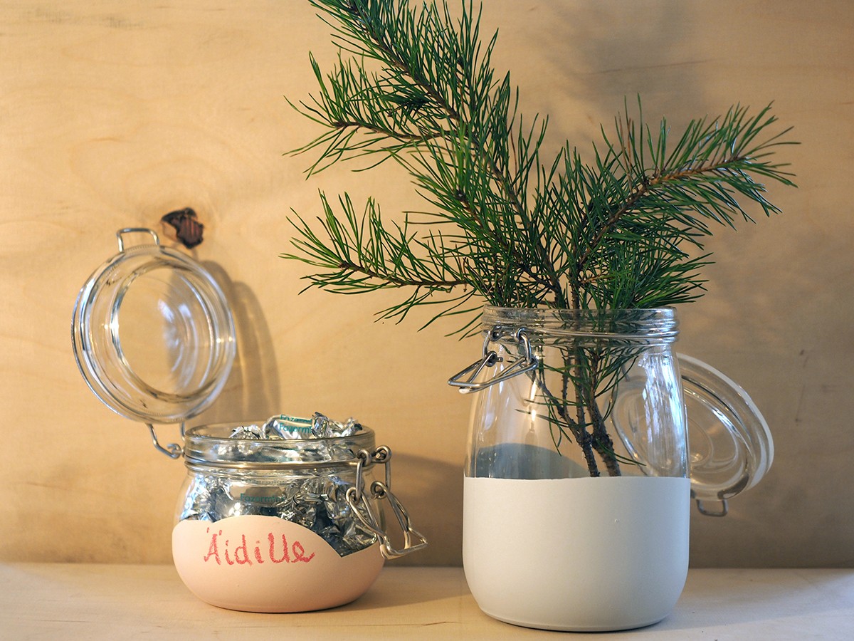 Zanurz nóżki kieliszków w farbie tablicowej, a gdy farba wyschnie odręcznie napisz imiona uczestników przyjęcia. Najmłodszych ucieszy z kolei wykonany w ten sposób personalizowany słoiczek. Szczególnie jeśli wypełnisz go słodkościami.