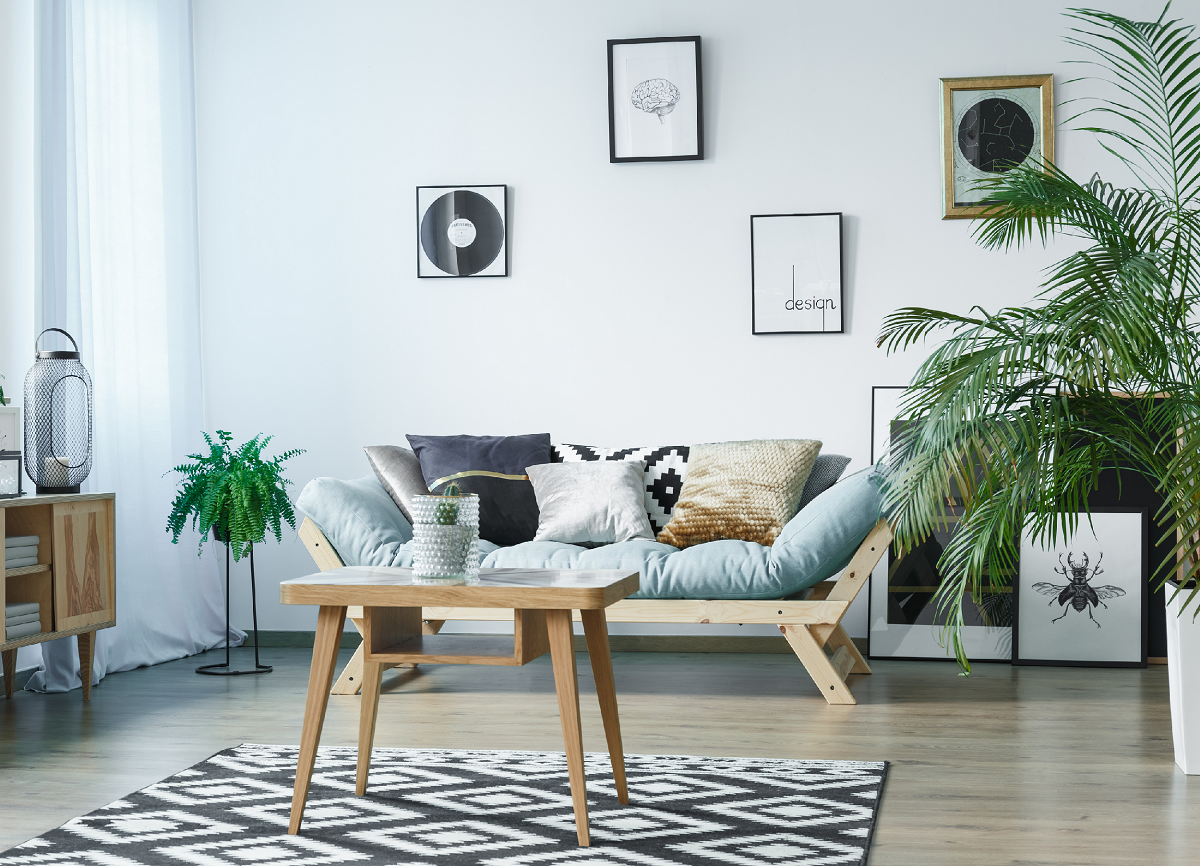 Również wnętrze w jasnym, chłodniejszym odcieniu szarości jak Neutral z palety Beckers Designer Colour, może tworzyć przytulną enklawę w zimowe dni, jeśli wprowadzimy do niego kilka ciepłych kolorystycznie akcentów, choćby w formie pluszowych poduszek. Dobrze zagrają one z meblami z jasnego drewna, podkreślając kojący charakter tego materiału. Energetycznym elementem będą także rośliny doniczkowe ustawione w rożnych miejscach pokoju. Wyraźne czarne akcenty dekoracyjne w formie grafik, stojących ozdób czy wzoru na dywanie dodadzą wnętrzu spójności i charakteru.