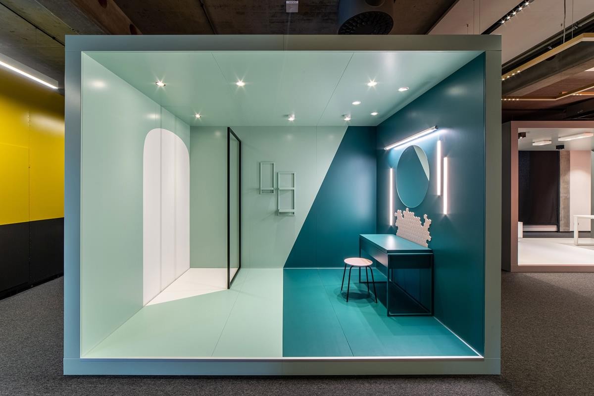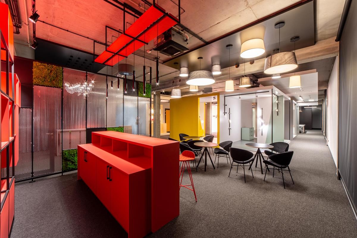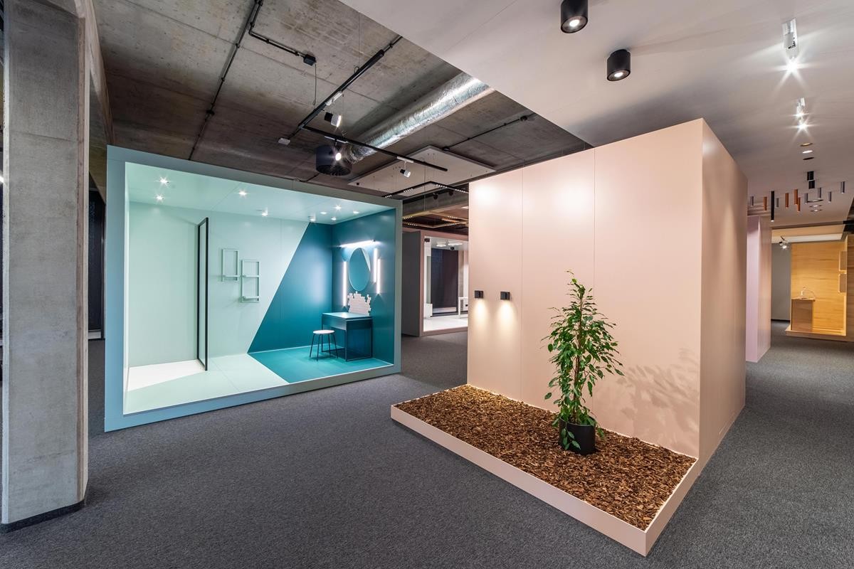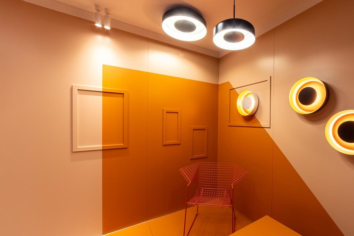 Za powstaniem tej kreatywnej przestrzeni, od koncepcji po wykonanie, stoi zespół AQForm. Stworzyli oni miejsce, które pokazuje, jak działa światło i jak wpływa na naszą codzienność oraz nas samych. Powstało miejsce, które pozwala pokazać i porównać wiele różnych funkcji oświetlenia jednocześnie: – od wnętrz prywatnych po komercyjne, takie jak biura, restauracje, gabinety kosmetyczne, czy sklepy. Showroom AQForm dzieli się na kilka stref. W każdej z nich można znaleźć atrybuty wskazujące na reprezentowane funkcje – w strefie domu, utrzymanej w ciepłej, pomarańczowej tonacji, znajdziemy ażurowy fotel, w pomieszczeniu reprezentującym biuro – ascetyczne biurko i kilka półek. Jednak atrybuty te celowo zostały zredukowane do minimum, aby skupić uwagę gości na głównym przekazie.