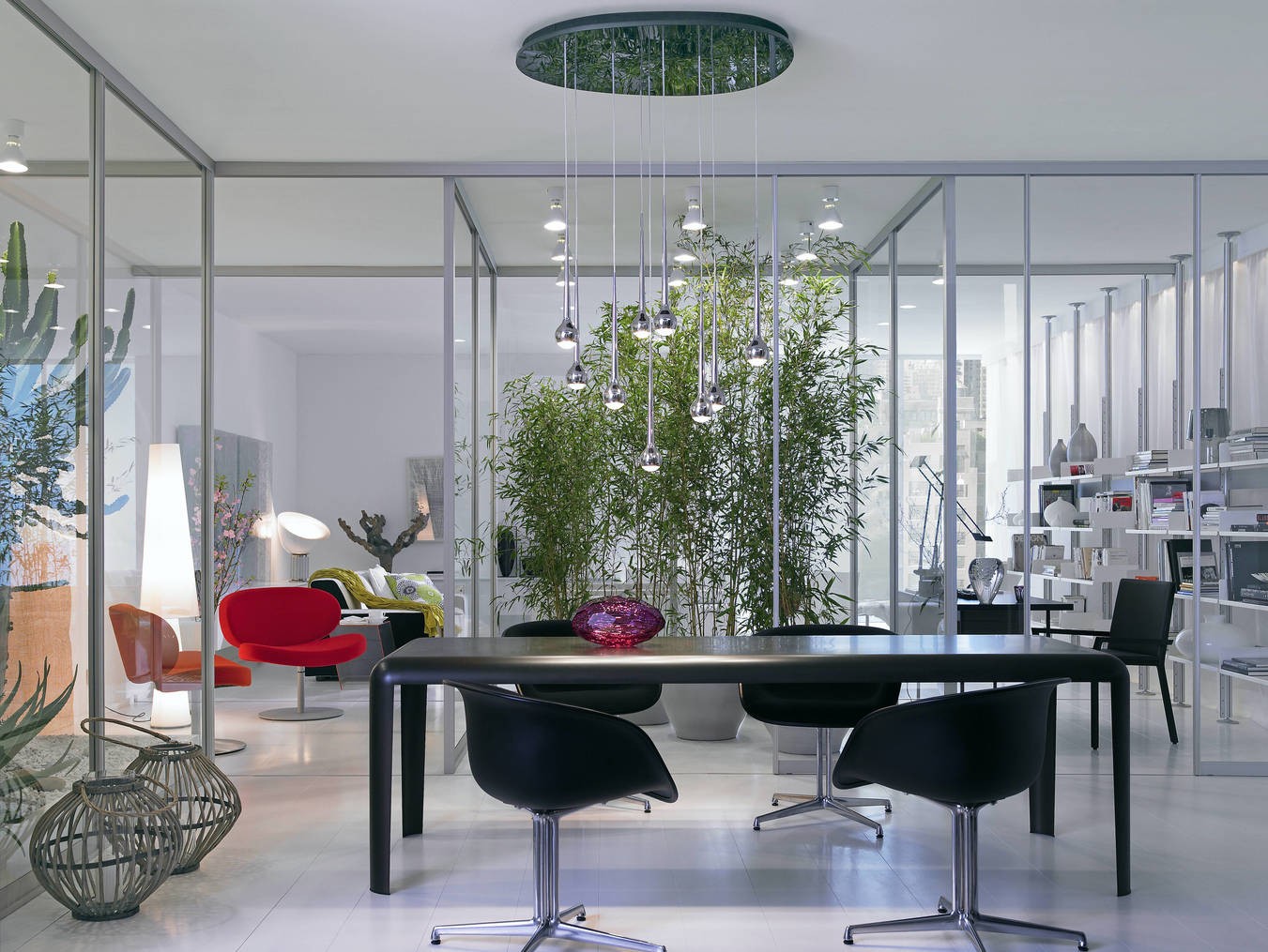 Szklaną ściankę bez problemu dopasujemy do każdego wnętrza. Rozwiązania oferowane przez Raumplus zamawiane są na wymiar i można je nawet instalować pod skosami. Również pod względem estetycznym mamy tu spore pole manewru. Do współczesnych domów świetnie pasują wielkoformatowe systemy ścianek i drzwi. Raumplus oferuje je w maksymalnym wymiarze 180 x 320 cm. Natomiast zwolenników wnętrz bardziej tradycyjnych, zdobnych lub utrzymanych modnych stylach boho czy loftowym zachwycą drzwi z szeroko rozstawionymi szprosami, kojarzące się ze starą fabryką. Co ciekawe, układ szprosów można samemu zaprojektować. Podobnie dobrać można kolor wykończenia aluminiowych profili. Od malowanych proszkowo w szerokiej palecie kolorów, po wykończone elegancką satynową anodą w kolorze srebrnym, czarnym i ciemnym brązie. Jeżeli chcemy w naszym szklanym gabinecie odciąć się od bodźców, dobrym pomysłem jest zamontowanie wzdłuż ścianki karnisza z tkaniną, którą zasłonimy w razie potrzeby.