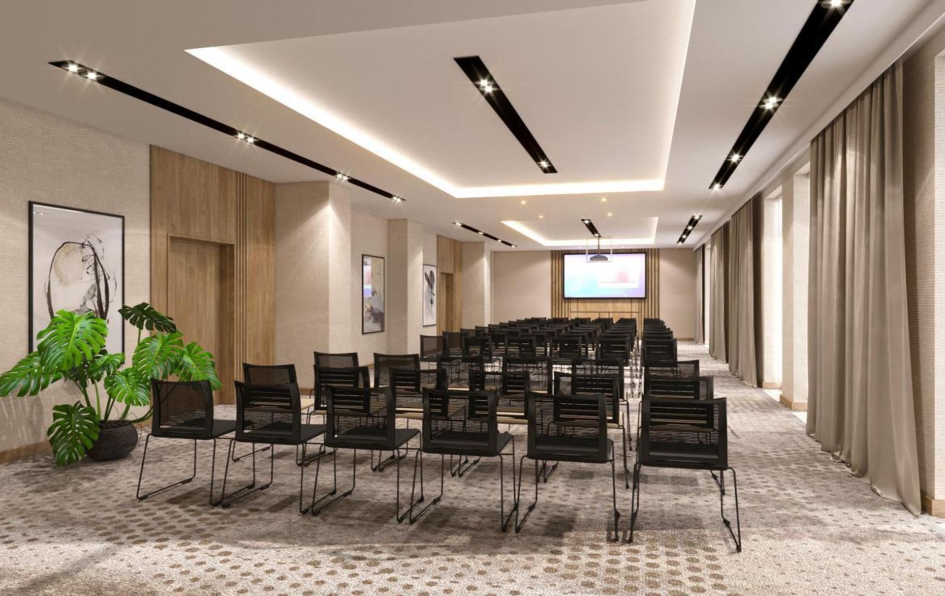 Hotel będzie wyposażony w sześć sal konferencyjnych - jedną dużą (z możliwością podziału na dwie części) oraz pięć o nieco mniejszej powierzchni. Podobnie jak w przypadku pozostałych części obiektu, tu również królują proste formy i subtelna paleta barw. Architekci zadbali o detale, które wprowadzają przytulny klimat, daleki od tradycyjnych biur. Wykładzina, ciężkie zasłony, drewniane okładziny ścienne i rośliny ozdobne ocieplają wnętrze i dodają mu przyjaznej atmosfery.