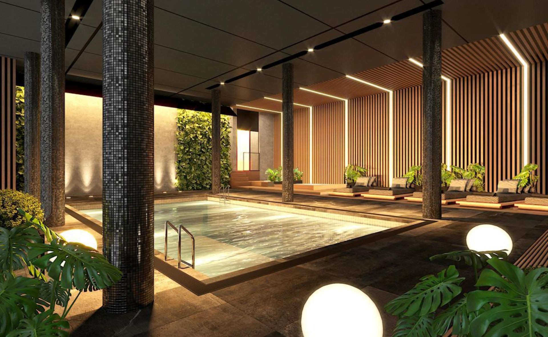 Do dyspozycji gości dostępna będzie również strefa SPA, basen oraz siłownia. Tu również konsekwentnie zastosowano brązy i beże, dużą ilość drewna, a także naturalne ozdoby w postaci zielonych ścian. Ważną rolę odgrywa tu oświetlenie, które tworzy przyjemną atmosferę i uwydatnia elegancję zastosowanych materiałów.