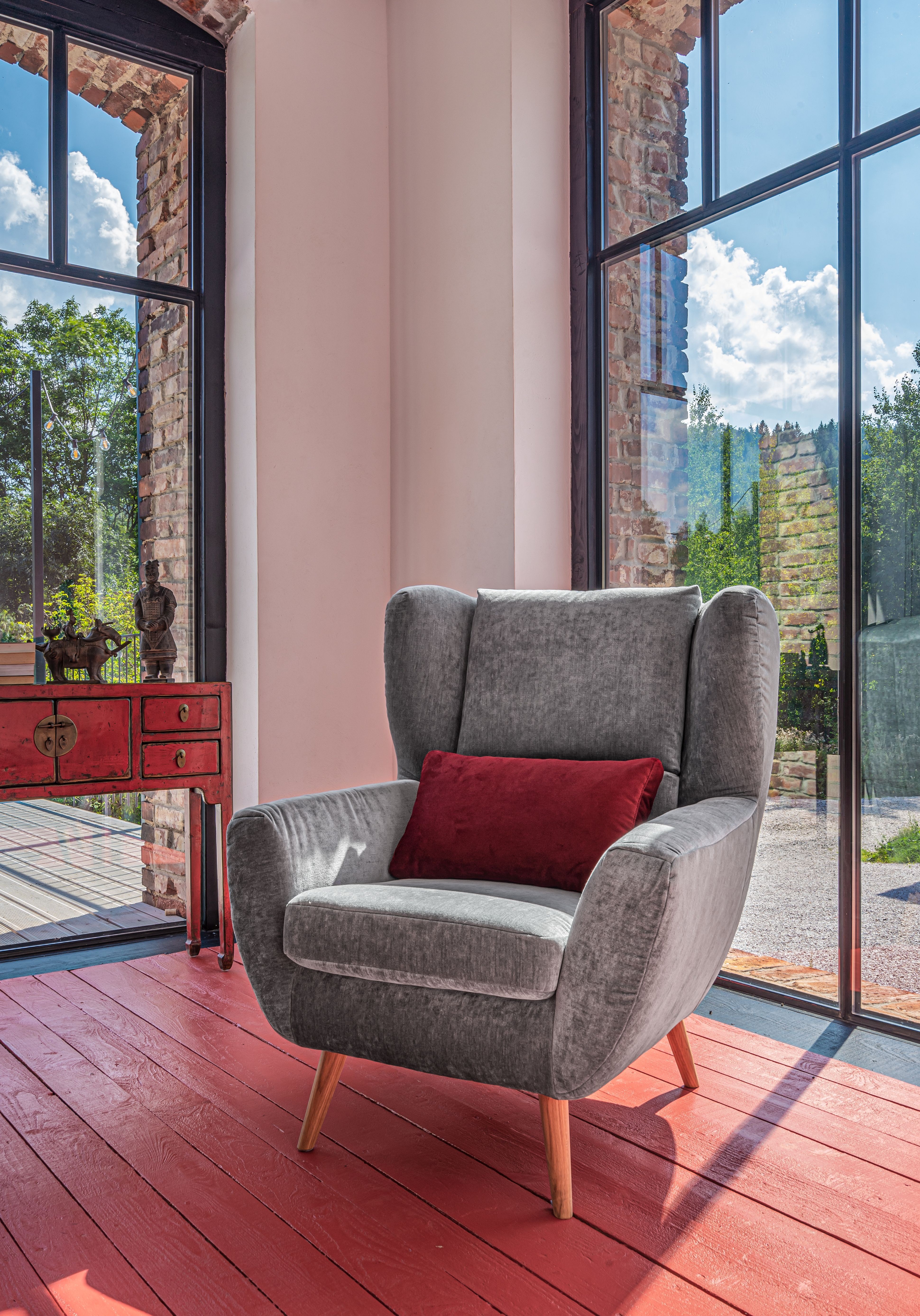 Jeśli fotel ma mieć wysokie nóżki, to najczęściej wybieramy te drewniane, choć rośnie także stopniowo grupa zwolenników nóżek metalowych, szczególnie w kolorze czarnym matowym. Zdecydowanie jednak w naszych wnętrzach królują jasne, naturalne wybarwienia drewna, mocno utożsamiane ze stylem skandynawskim, m.in. dąb natura, buk natura czy dąb efekt wosku. Są one mniej dominujące i stanowią subtelne dopełnienie bryły mebla. Jasne drewno buduje dodatkowo bliskie skojarzenia z naturą i jest przy tym bardzo neutralne. Pasuje bowiem nie tylko do wnętrz skandynawskich, ale także choćby tych w stylu modern classic.