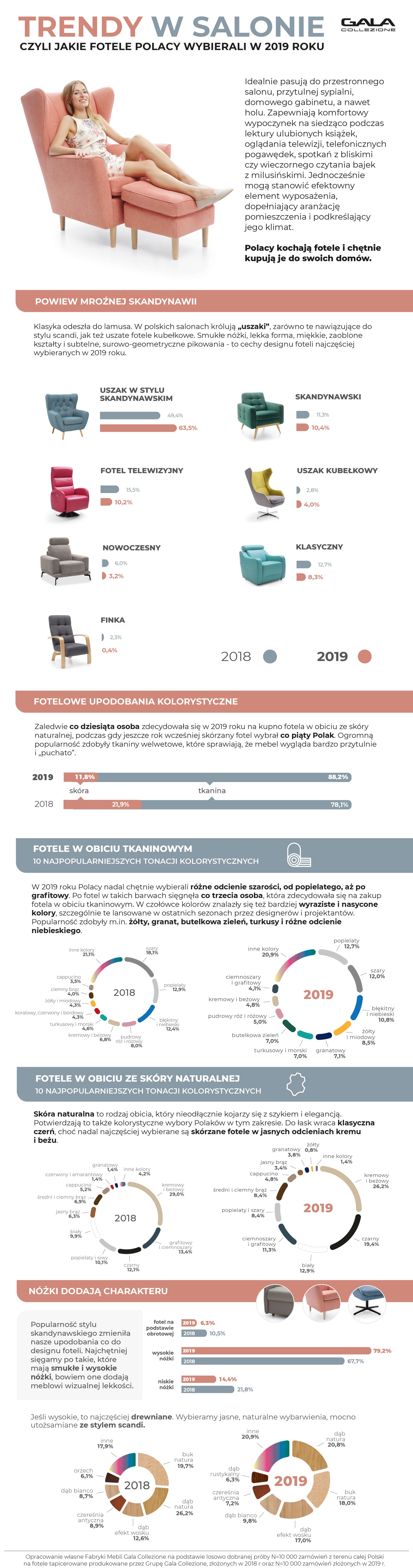 Raport jest opracowaniem własnym Fabryki Mebli Gala Collezione na podstawie losowo dobranej próby N=10 000 zamówień z terenu całej Polski na fotele tapicerowane produkowane przez Grupę Gala Collezione złożonych w 2018 r oraz N=10 000 zamówień złożonych w 2019 r.