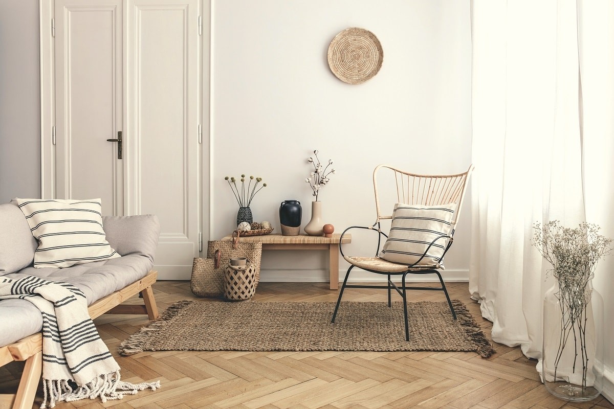 W stylu eko nie ma miejsca na tworzywa sztuczne. Podstawą są naturalne materiały i korzystanie z tego, co oferuje otaczający nas świat. Dlatego idealnym rozwiązaniem do zaaranżowanych zgodnie z trendem eko pomieszczeń jest drewno. Wykonane z tego szlachetnego surowca elementy wyposażenia wdzięcznie zdobią wnętrze, nadając mu ponadczasowy charakter, ale też wnoszą do wystroju nieco ciepła. W tę estetykę świetnie wkomponowują się ściany w kolorze złamanej bieli Bone z palety Tikkurila Optiva White. Jasny, stonowany odcień podkreśli porządek i równowagę we wnętrzu, a jednocześnie rozświetli pomieszczenie, co pozwoli na optymalne wykorzystanie światła dziennego. Lniane dodatki i plecionki gustownie wykończą tę delikatną stylizację.
