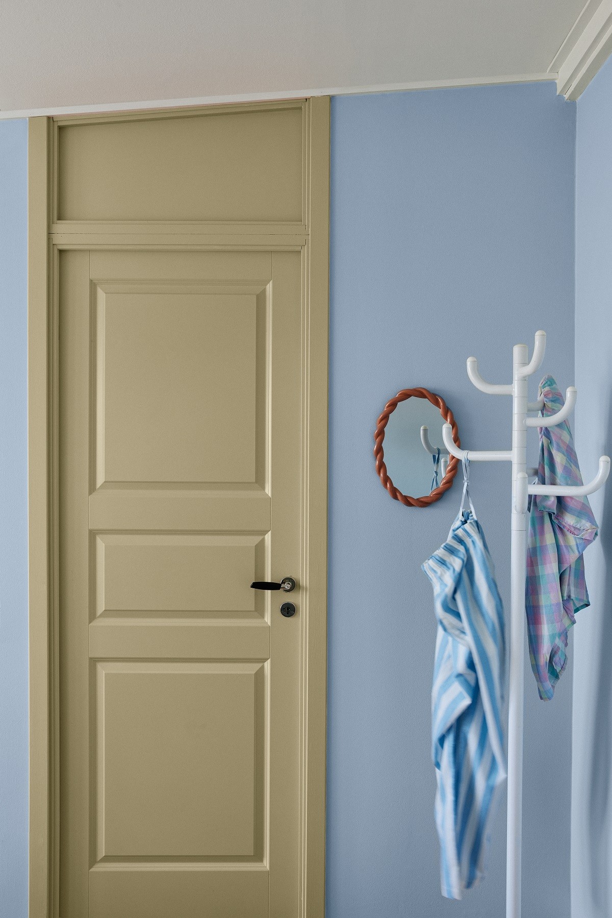 Jeśli ktoś ma życzenie, aby jego dom przypominał niebo w pogodny dzień, zrealizuje je malując ściany błękitem w odcieniu Milky z nowej palety Playful Spirit farb Beckers Designer Collection. Łagodne wejście w codzienność z wytworzonego w ten sposób odprężającego klimatu ułatwi zastosowany na drzwiach waniliowy kolor Panna Cotta emalii Beckers Designer Universal.