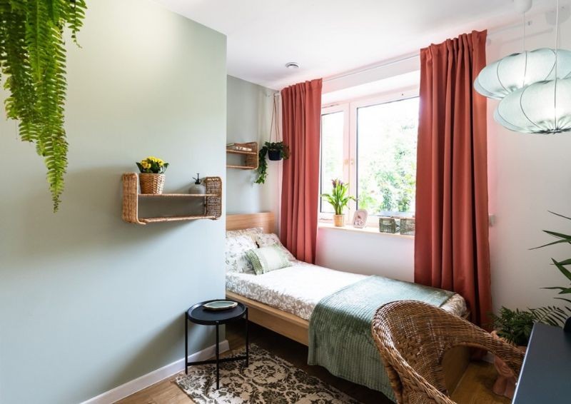 W miejscu dawnej kuchni Marta postanowiła stworzyć osobny pokój dla babci – pani Stanisławy. Dzięki zmianom układu ścian ekipie udało się przeobrazić to pomieszczenie we wnętrze pełne roślinności, opatrzone dekoracyjną tapetą. Pani Stasi zależało na tym, by móc dużo odpoczywać, a we własnych czterech ścianach nie będzie miała z tym problemu.