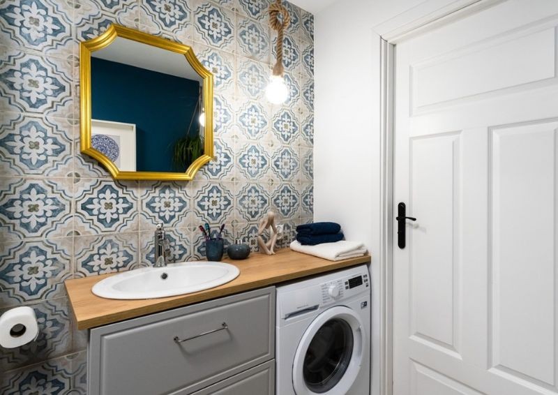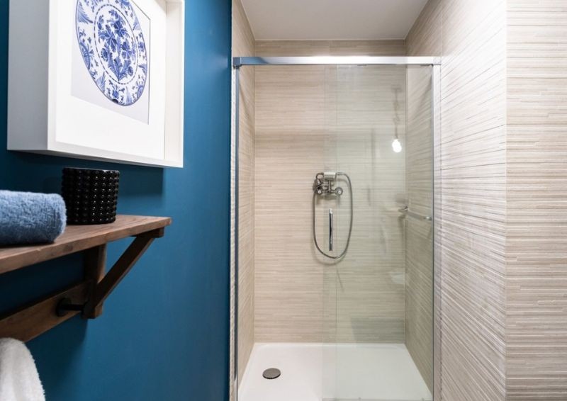 Obok pokoju pani Stanisławy zaaranżowano nową, funkcjonalną łazienkę przystosowaną do osób z ograniczeniami ruchowymi. Z tego względu wstawiono przestronny prysznic. Ponadto Marta wybrała kolorowe kafelki, które sprawiły, że łazienka stała się bardzo przytulna.