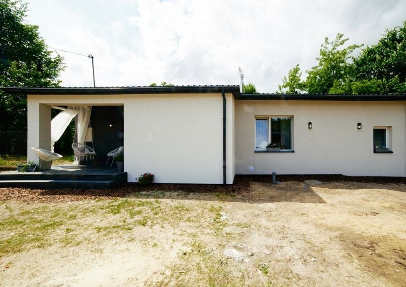 Dla ekipy budowlanej projekt nowego domu wymagał sporego nakładu pracy, ale efekt końcowy był wart każdego wysiłku. Z zewnątrz dom został ocieplony oraz ujednolicono jego kolor. Dodatkowo zagospodarowano taras, wstawiając meble wypoczynkowe, dzięki którym każdy z członków rodziny znajdzie miejsce na relaks.