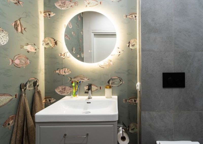 Niezwykłe przeobrażenie zdecydowanie przeszła łazienka. Chociaż jest mała, korzystanie z niej będzie praktyczne. Martyna zdecydowała umieścić w niej kabinę prysznicową, z której bez problemu skorzysta każdy z domowników, niezależnie od wieku. Od teraz pomieszczenie stanie się miejscem prawdziwego relaksu. Wnętrze łazienki ucieszy oko nie tylko dorosłych mieszkańców, ale i małego Wiktora za sprawą dekoracyjnego motywu z rybkami na kafelkach.