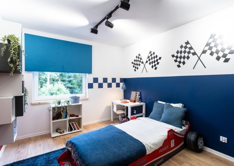 Projektantce udało się stworzyć odrębne pokoje dla każdego z domowników. Z dbałością o szczegóły przygotowano wnętrze dla najmłodszego członka rodziny. Nowe łóżko dla Wiktora posiada motyw z wyścigów, a na ścianach również umieszczono odwołujące do tego tematu dekoracje. W ten sposób chłopiec na długie lata będzie mógł cieszyć się oryginalnym wystrojem.