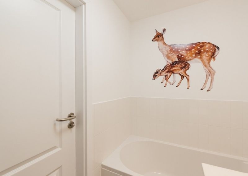 Jedną z większych metamorfoz przeszła łazienka, w której upychano wszystko, co się dało. Łącznie z suszarką na pranie stawianą w wannie. Odświeżono jej wygląd nie tylko za sprawą nowych kafelek, ale także dodając na jednej ze ścian wizerunek sarenek.