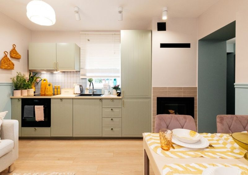 Rodzina nie mogła poznać nowego domu. U progu ucieszyła ich nowa elektryka – czyli brak wystających kabli w odświeżonym przedpokoju. Przeobrażeniu przeszła kuchnia z salonem i jadalnią, stała się miejscem do wspólnego spędzania czasu. Całość urządzono w jasnych, zielonych odcieniach i wyposażono w najważniejsze urządzenia poprawiające komfort.