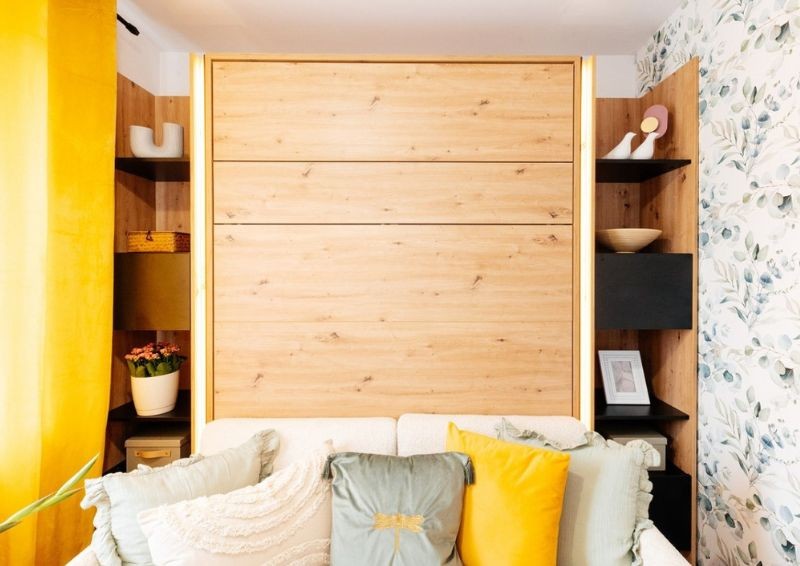 Dla pani Agnieszki największym zaskoczeniem okazał się być jej własny pokój. Nie spodziewała się, że zyska przestrzeń tylko dla siebie. Maciej zmieścił w nim beżową kanapę, która staje się rozkładanym łóżkiem za jednym pociągnięciem konstrukcji. Nie zabrakło również przestronnej, białej szafy.