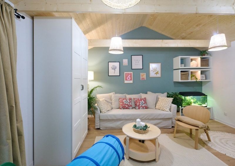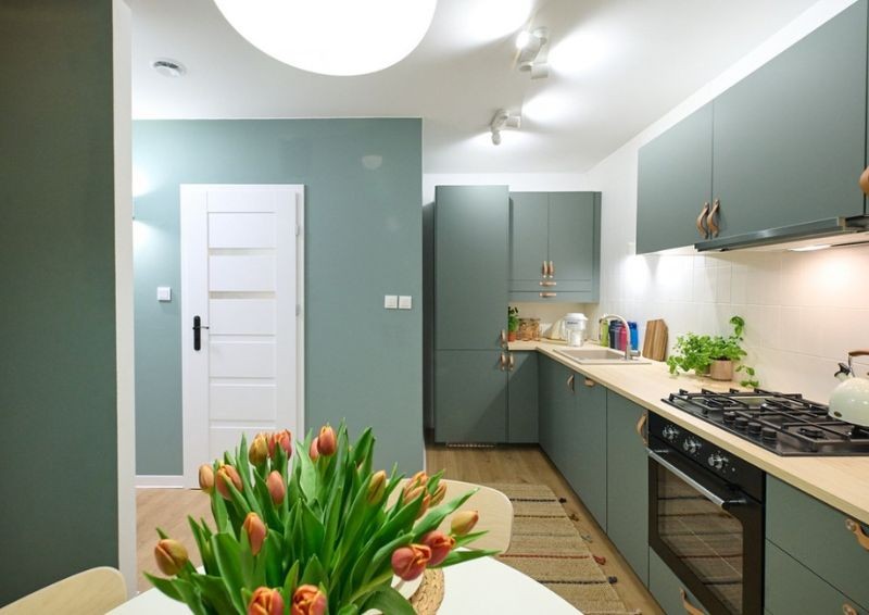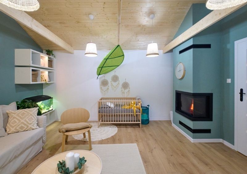 Pomieszczenie zdominowały zielone barwy. Fot. Materiały partnera/Polsat/Nasz Nowy Dom