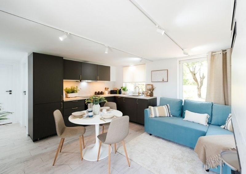 W największym pomieszczeniu znajduje się kuchnia i salon z miejscem do spania dla Pani Agnieszki. Fot. NaszNowyDom