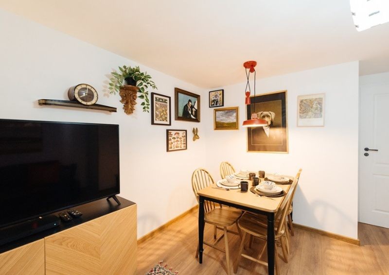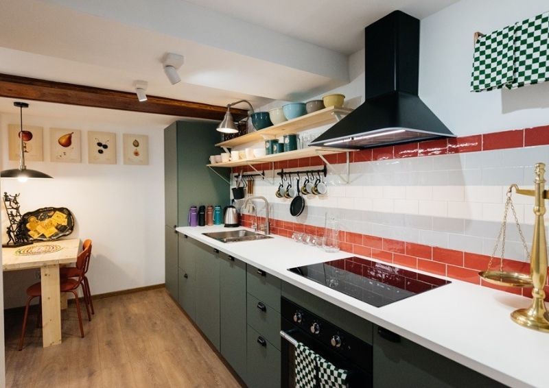 Miejscem nie do poznania stała się nowa kuchnia. Po starej, ciasnej i bardzo ciemnej przestrzeni nie było już śladu. W odświeżonym wnętrzu ściany pomalowano na biało i skontrastowano to z zielonymi frontami. Dodatkowo zadbano o dekoracje w postaci licznych obrazów.