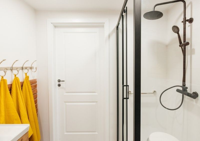 Przy projekcie łazienki, Martyna przypilnowała, żeby nikt nie miał problemu, by poruszać się w niej swobodnie. Z tego względu zdecydowała, by w śroku zamontowano dużą kabinę prysznicową. Ściany pokryto bielą, przez co nowe miejsce stało się bardzo ciepłe i jasne.