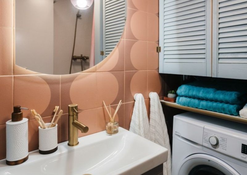 W pierwszej kolejności architektka Marta skupiła się na wygospodarowaniu przestrzeni na stworzenie nowej łazienki. Miejsca absolutnie podstawowego w każdym domu. Nie jest ona duża, ale za to bardzo funkcjonalna, utrzymana w pastelowych odcieniach.