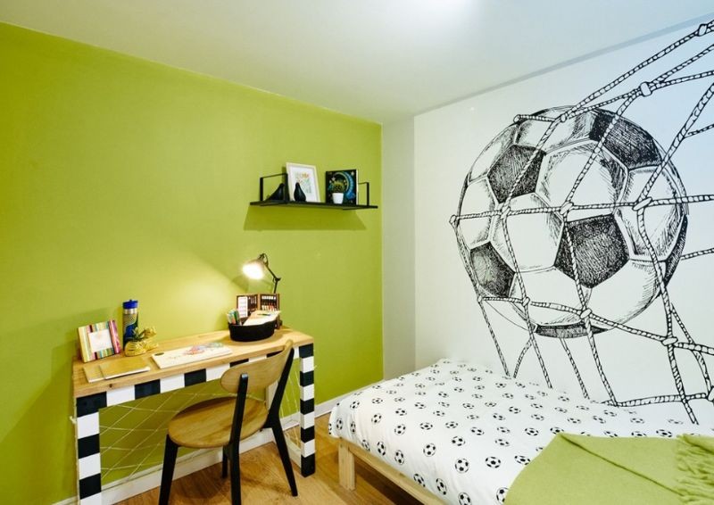 Dla chłopca projektantka przygotowała coś specjalnego. Zaaranżowała wnętrze pamiętając o tym, że będzie w nim mieszkać miłośnik piłki nożnej.