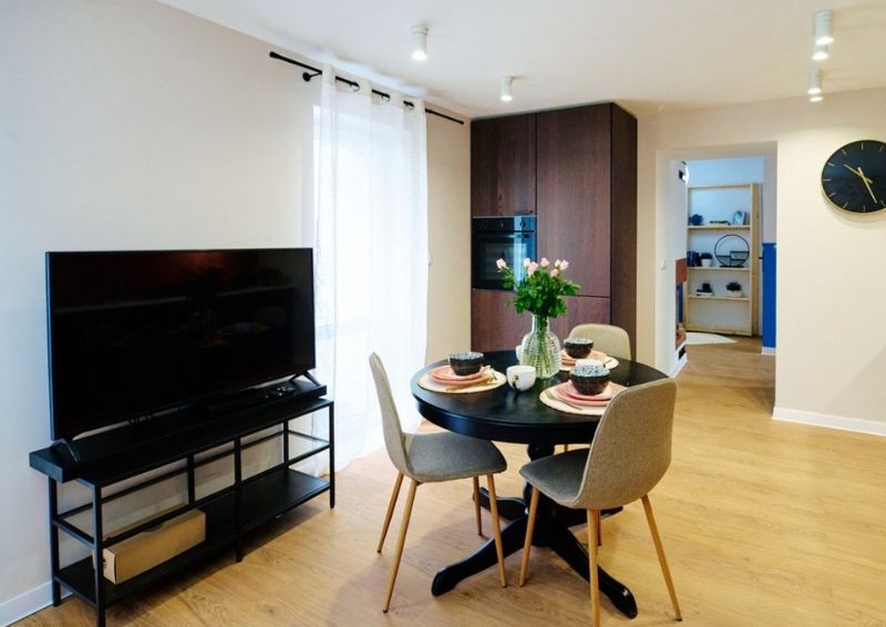 Ciemne meble kontrastują z jasnymi ścianiami. Fot. Materiały partnera/Polsat/Nasz Nowy Dom
