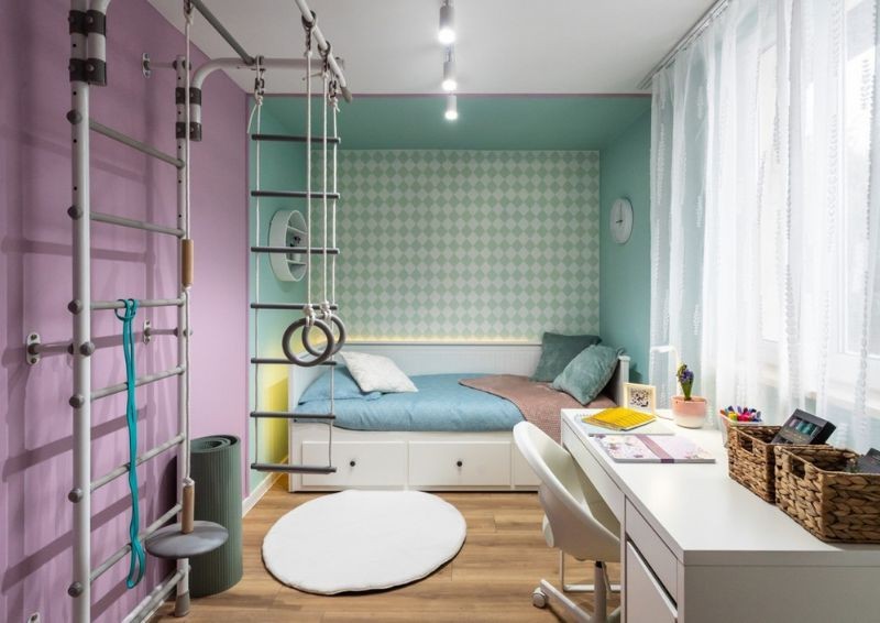 Drugi i ostatni pokój w niewielkim domu należał do całej rodziny – swoje łóżko obok rodziców miała Dominika. Za sprawą zmian wprowadzonych przez Macieja Pertkiewicza oraz zespół Przemka Oślaka, udało się wydobyć dwa mniejsze pokoje. Ekipa z Elą Romanowską na czele postarała się, by stworzyć dla 10-latki pokój pełen atrakcji. Utrzymano go w zielono-różowych pastelowych kolorach. A w centralnej części umieszczono urządzenie do ćwiczeń.