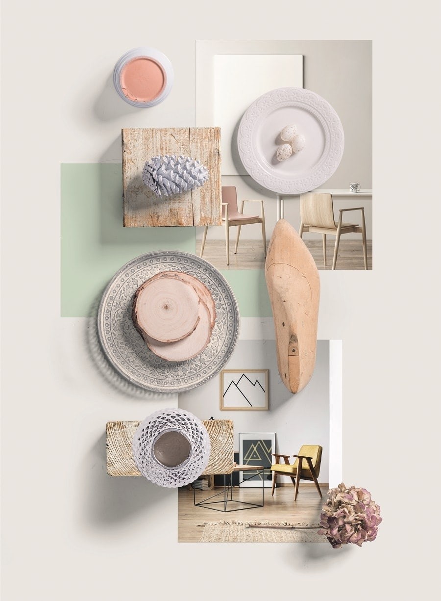 Jeśli podoba Ci się styl i nastrój, jakie udało się stworzyć na moodboardzie, wybierz kolor, który według Ciebie będzie pasował do Twojej koncepcji. To jeszcze nie czas, by zastanawiać się nad konkretnym jego odcieniem. Na razie skup się tylko na podstawowej barwie. Czy będzie to klasyczna szarość, błękit, a może zieleń?