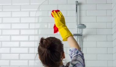 Porady domowe Czym najlepiej myć płytki w łazience, by pozbyć się osadu z mydła i zacieków? Wypróbuj prostą metodę