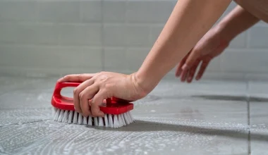 Czyści płytki i fugi w kuchni oraz łazience na błysk