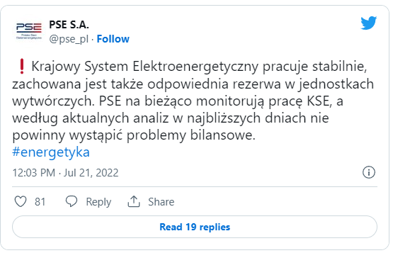 W zeszłym roku w Polsce panikę wywołał wpis Rządowego Centrum Bezpieczeństwa zamieszczony na Twitterze, w którym instytucja poucza jak przygotować się na blackout i czym on właściwie jest. Na początku grudnia 2021 Polskie Sieci Elektroenergetyczne ogłosiły, że Polska awaryjnie importowała energię elektryczną od sąsiadów: Litwy, Szwecji, Niemiec, Czech i Ukrainy z powodu niedoboru bilansowego. Jak wówczas wyjaśniali eksperci z portali Wysokienapiecie i 300polityka – sytuacja była poważna i wynikała z konieczności utrzymania rezerw mocy na odpowiednim poziomie.