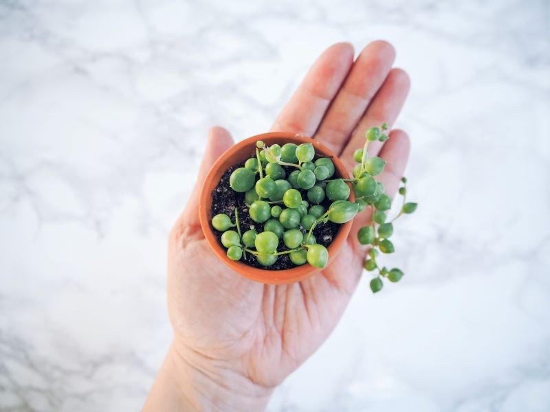 Sznur pereł to piękny sukulent o nietypowych liściach w kształcie kulek, który idealne do ozdabiania wnętrza. Do tego ma niewielkie wymagania, a dzięki łatwemu rozmnażaniu można go uprawiać praktycznie bez końca!