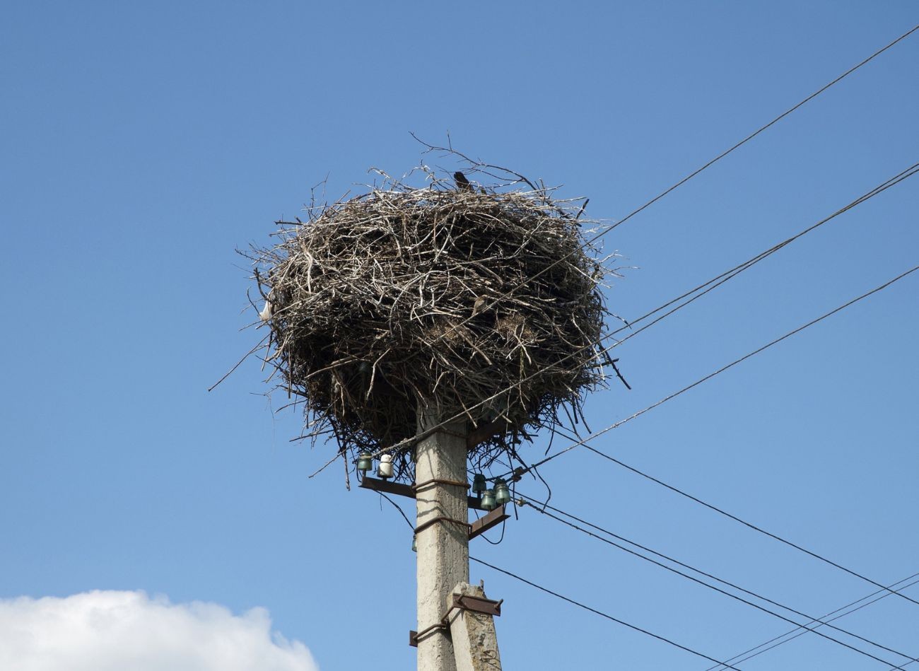 Jeśli gniazdo bocianów znajduje się na słupie energetycznym, trzeba wezwać specjalistów. Fot. dmitrydesigner/123RF.com