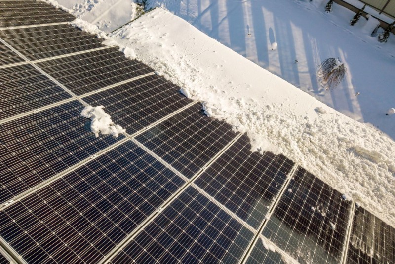 Nawet cienka warstwa śniegu obniża wydajność paneli o kilkadziesiąt procent. Dlatego tak ważne jet jego usuwanie. Fot. bilanol/123RF.com