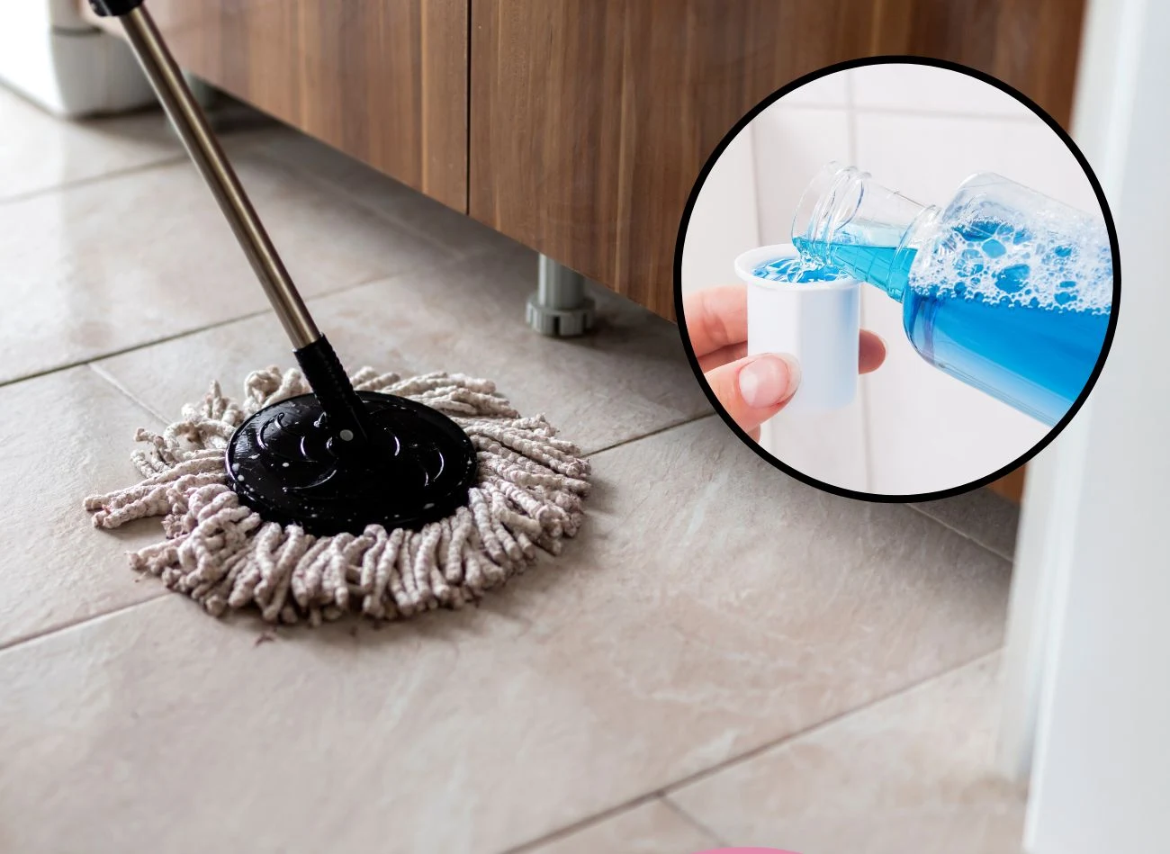 - Płyn po płukania jamy ustnej z wodą – to chyba najdziwniejsze połączenie w tym zestawieniu, ale działa doskonale na podłogach z płytek, myjąc je dokładnie i natychmiast zabijając zarazki.