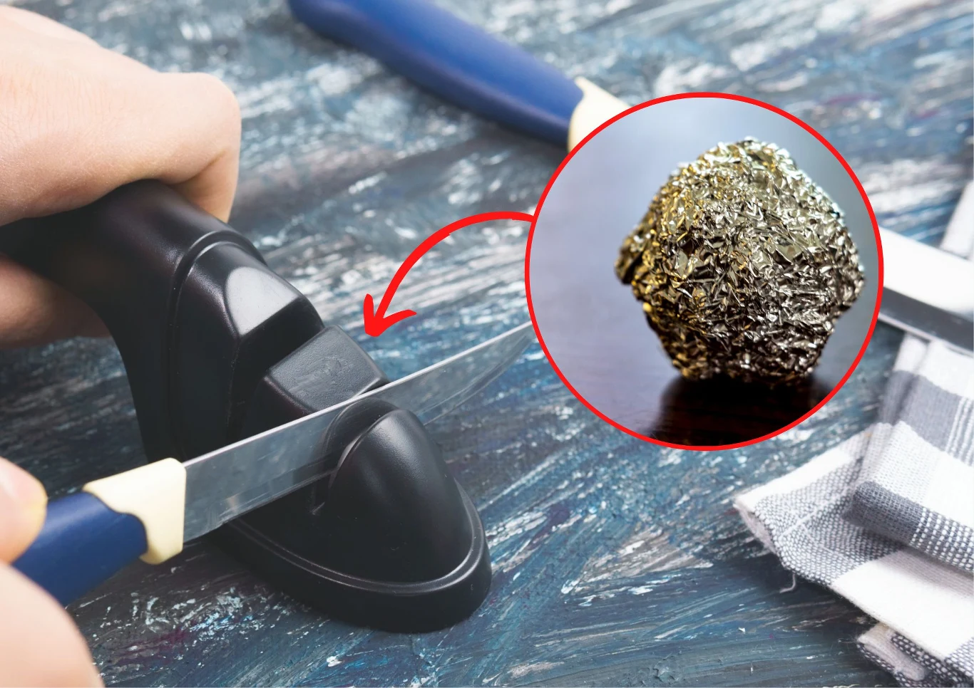 - ostrzenie za pomocą folii aluminiowej - wystarczy rozpocząć krojenie arkuszy foli aluminiowej na kawałki. Dzięki temu możemy naostrzyć małe noże, które nie są jeszcze bardzo tępe.