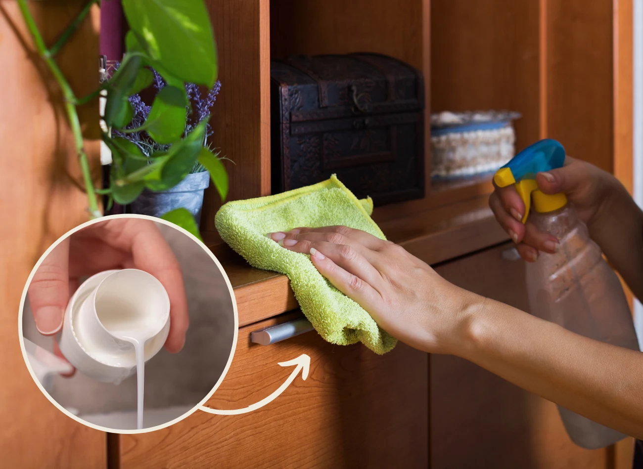 - Spryskaj płynem meble i przetrzyj je ściereczką z mikrofibry.