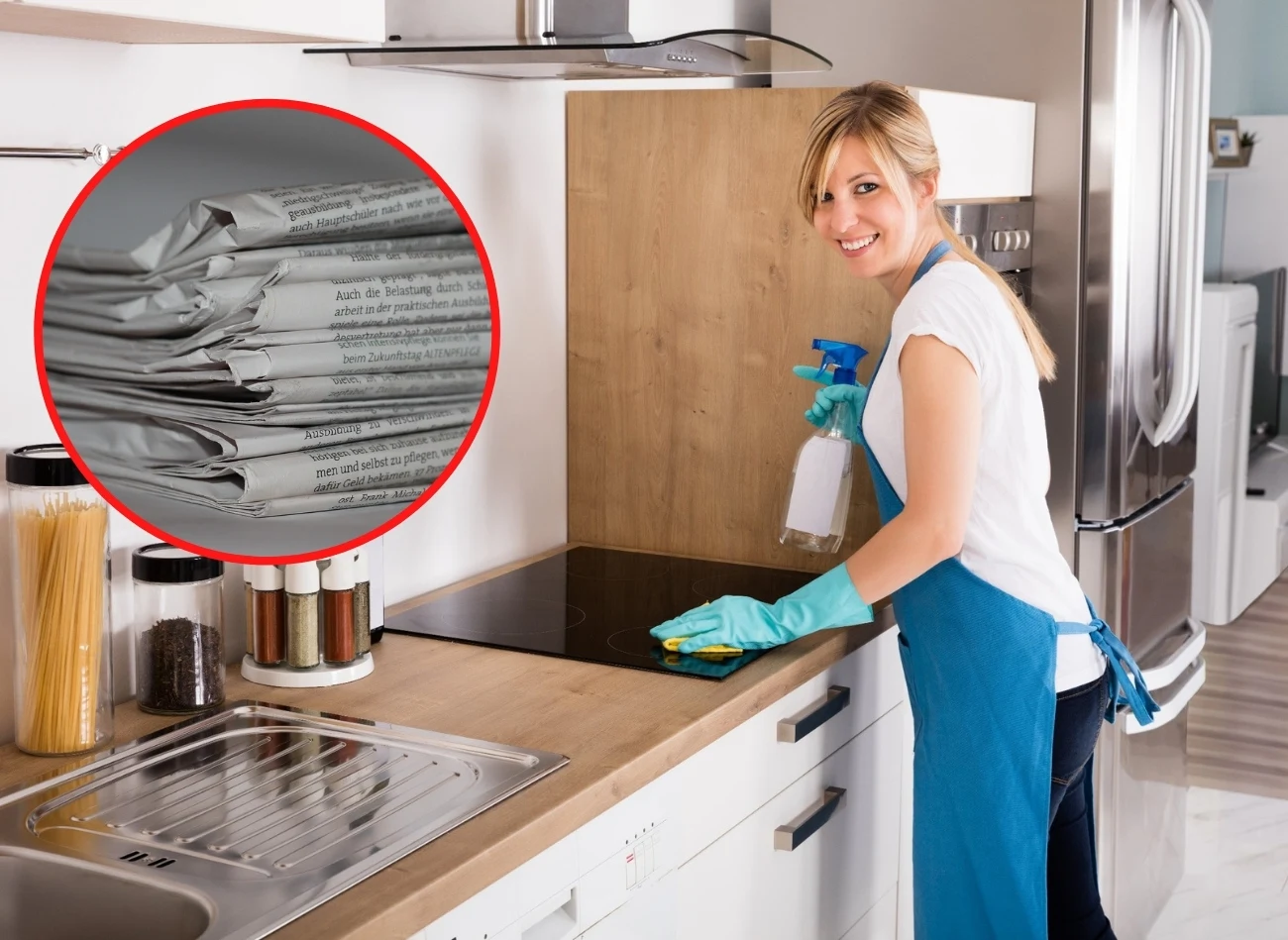 - Gazety lub ręczniki papierowe - gdy naszym problemem jest tłuszcz zalegający na samej górze mebli kuchennych, warto posłużyć się starymi gazetami lub ręcznikami papierowymi. Rozłożenie ich na szafkach sprawi, że tłuszcz, zamiast osadzać się na meblach, będzie wsiąkał w papier. Zabrudzone gazety można co jakiś czas wymieniać na nowe, a meble kuchenne pozostaną wtedy czyste.